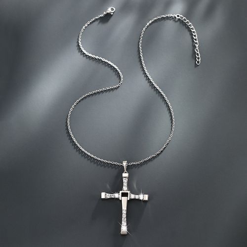 Hip Hop Zircon Cross Pendant Necklace Trendy Stainless Steel Cross Necklace for Christian Religious Jewelry