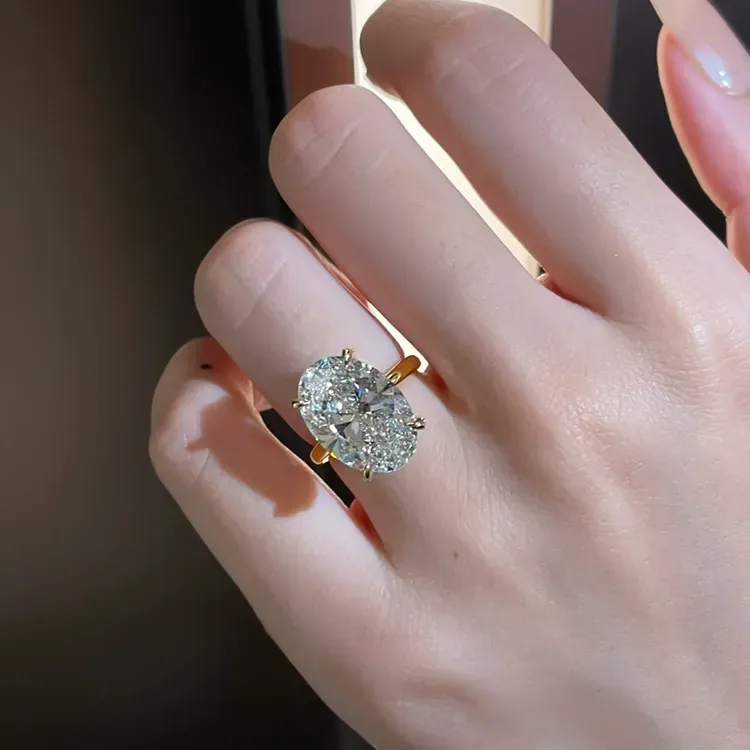 Starry Sky Cut French minimalist style large carat oval diamond ring for women (with pigeon egg-shaped diamond)
